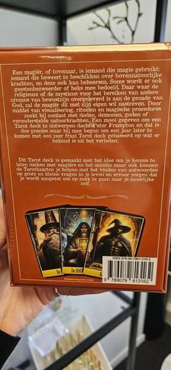 Een magiër, of tovenaar, is iemand die magie gebruikt: iemand die beweert te beschikken over bovennatuurlijke krachten, en deze ook kan beheersen. Soms wordt er ook geestenbezweerder of heks mee bedoeld. Daar waar de religieuze of de mysticus voor het bereiken van andere niveaus van bewustzijn overgeleverd is aan de genade van God, zal de magiër dit met zijn eigen wil nastreven. Door middel van visualisering, rituelen en magische procedures zoekt hij contact met doden, demonen, goden of veronderstelde natuurkrachten. Een mooi gegeven om een Tarot deck te ontwerpen dacht Peter Frampton en dat is dus precies waar hij mee begon om een jaar later te komen met een zeer fraai Tarot deck gebaseerd op wat er bekend is uit het verleden. Dit Tarot deck is gemaakt met het idee om je kennis te laten maken met magiërs en het occulte maar ook kunnen de Tarotkaarten je helpen met het vinden van antwoorden op grote en kleine vragen in je leven en ervoor zorgen dat je wordt aangezet om op zoek te gaan naar je innerlijke zelf.
