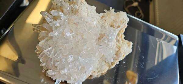 Zo super mooi deze prachtige witte Calciet overgroeid met duizenden kristalpuntjes uit Indonesië 😍