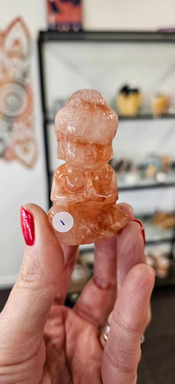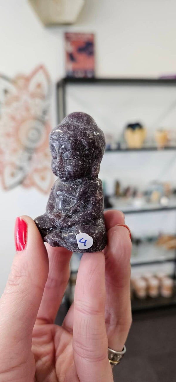 Buddha in pink fire azeztuliet en lepidoliet