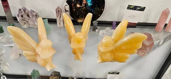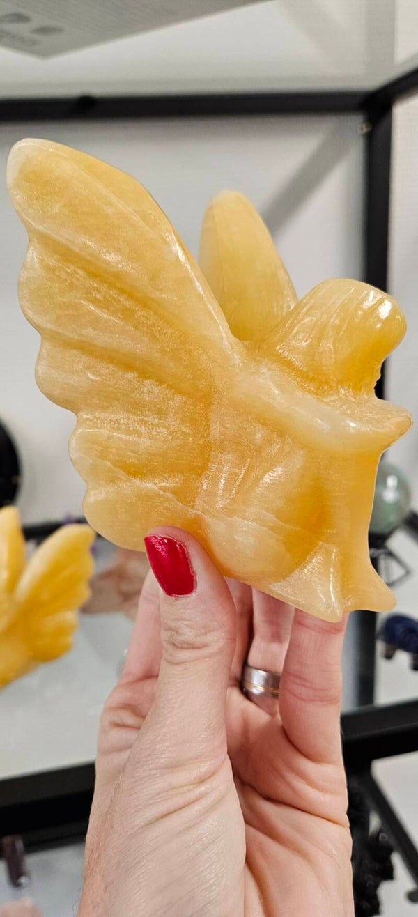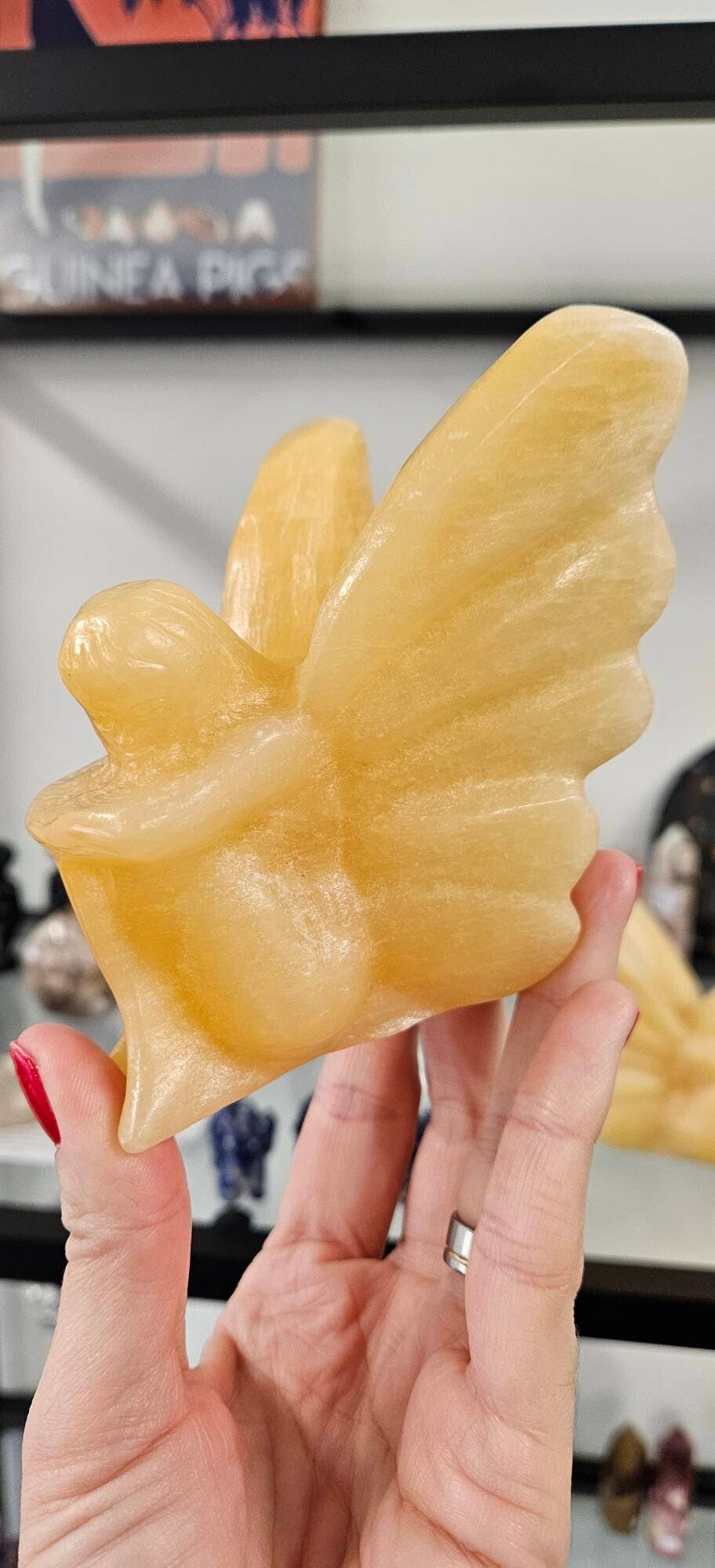 Prachtige mystieke grote, Oranje calciet elven 💛