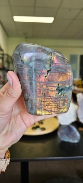 Veel labradoriet bevat meerdere flashes — dat is juist krachtig. Dit maakt labradoriet een echte allround steen die zich aanpast aan wat jij nodig hebt op dat moment.